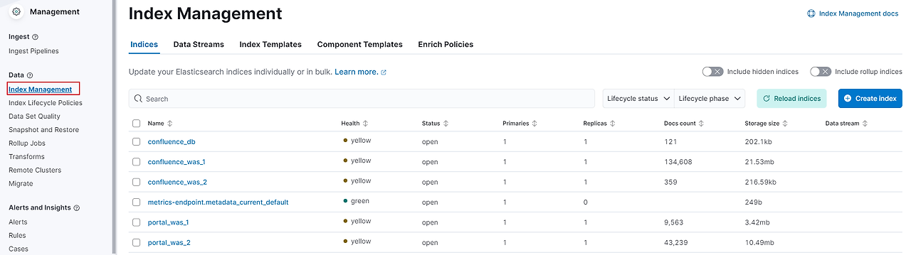 그리고 Stack Management에 가서 index가 정상적으로 생성이 되었나 확인 해줍니다.