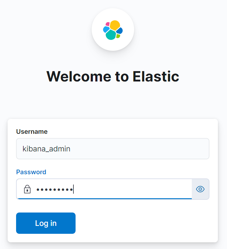 # elasticsearch와 연결하기 위해 위에서 생성한 kibana_admin 계정 입력