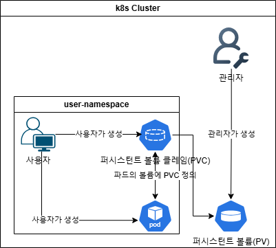 - 사용자가 PVC를 생성하면, 사용자가 정의한 PVC에 맞는 PV가 자동으로 바인딩 됩니다.