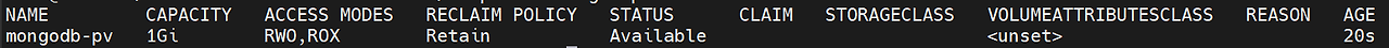 piVersion: v1 kind: Pod metadata: name: mongodb spec: containers: - image: mongo name: mongodb volumeMounts: - name: mongodb-data mountPath: /data/db ports: - containerPort: 27017 protocol: TCP volumes: - name: mongodb-data persistentVolumeClaim: claimName: mongodb-pvc # 앞서 생성한 PVC의 이름을 넣어주면 됩니다.