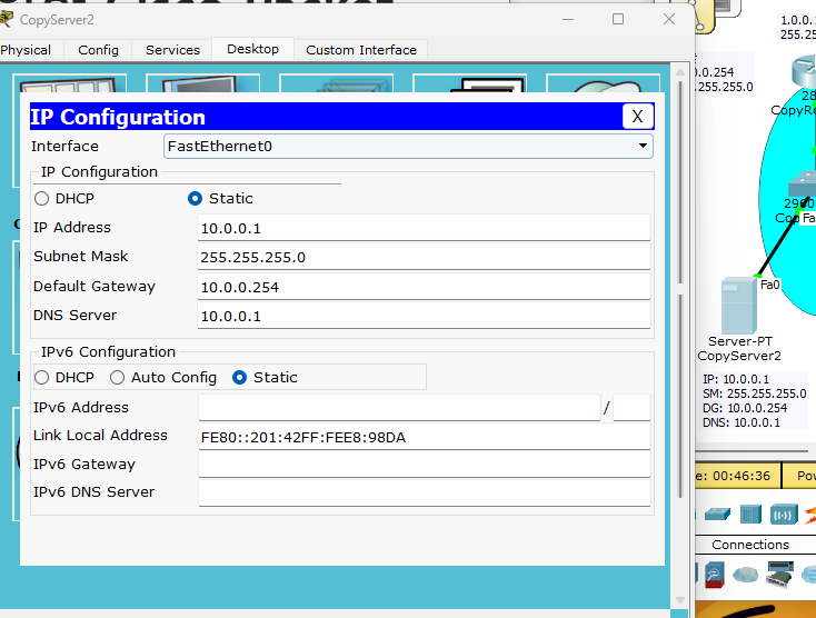 위와 같이 서버 아이콘을 클릭 후, IP configuration에서 설정을 해줍니다.