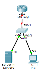 위의 사진을 보면 라우터, 스위치, 서버, PC로 구성이 되어있다.