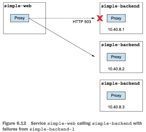$ kubectl apply -f ch6/simple-backend-periodic-failure-503.yaml -n istioinaction