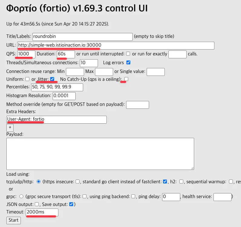 🔧 Fortio를 사용하여 테스트