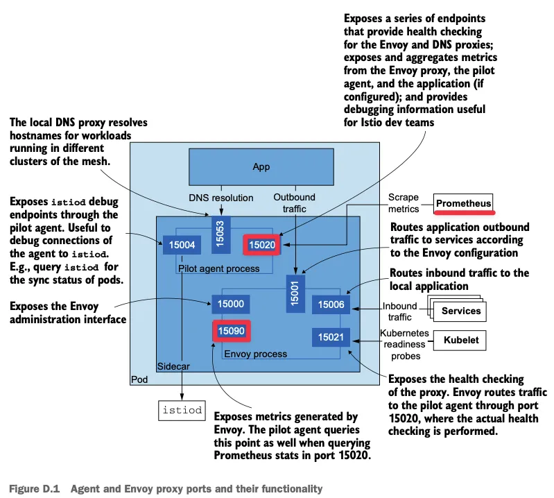 따라서 프록시(Envoy)를 통해 요청 처리, 서비스 상호작용에 관련된 메트릭을 포착할 수 있습니다.