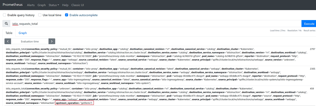 istiocustom.istio_requests_total.reporter.source.source_workload.webapp.source_canonical_service.webapp.source_canonical_revision.latest.source_workload_namespace.istioinaction.source_principal.spiffe://cluster.local/ns/istioinaction/sa/webapp.source_app.webapp.source_version.source_cluster.Kubernetes.destination_workload.catalog.destination_workload_namespace.istioinaction.destination_principal.spiffe://cluster.local/ns/istioinaction/sa/catalog.destination_app.catalog.destination_version.v1.destination_service.catalog.istioinaction.svc.cluster.local.destination_canonical_service.catalog.destination_canonical_revision.v1.destination_service_name.catalog.destination_service_namespace.istioinaction.destination_cluster.Kubernetes.request_protocol.http.response_code.200.grpc_response_status.response_flags.-.connection_security_policy.unknown: 2