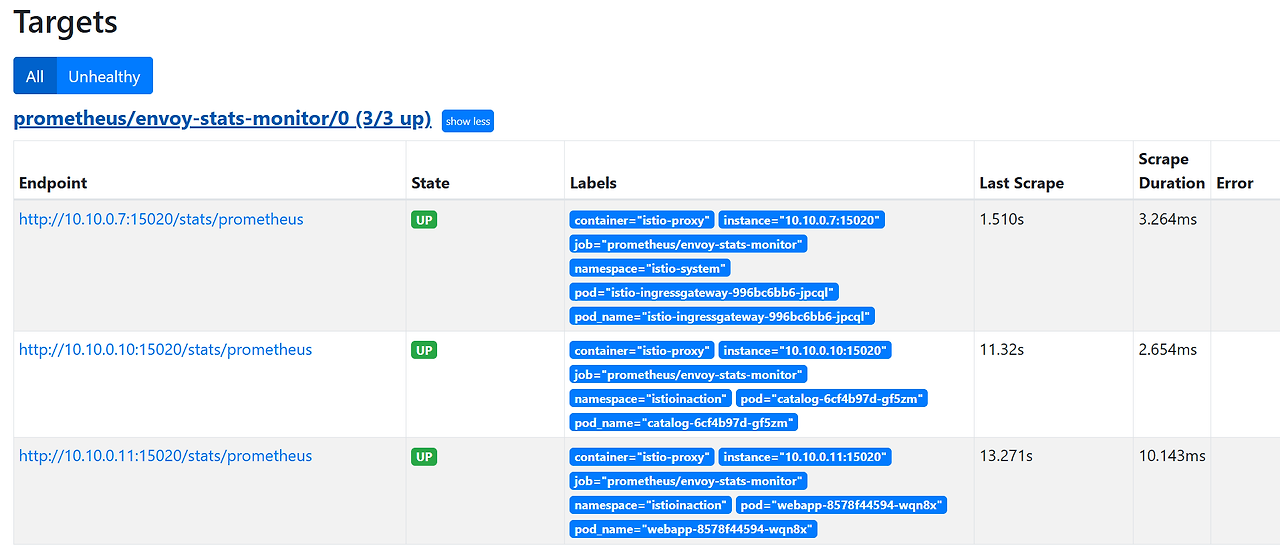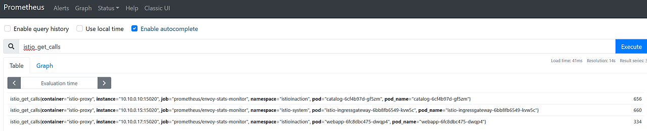 $ kubectl exec -it deploy/webapp -c istio-proxy -n istioinaction -- curl localhost:15000/stats|grep istio_requests_total
