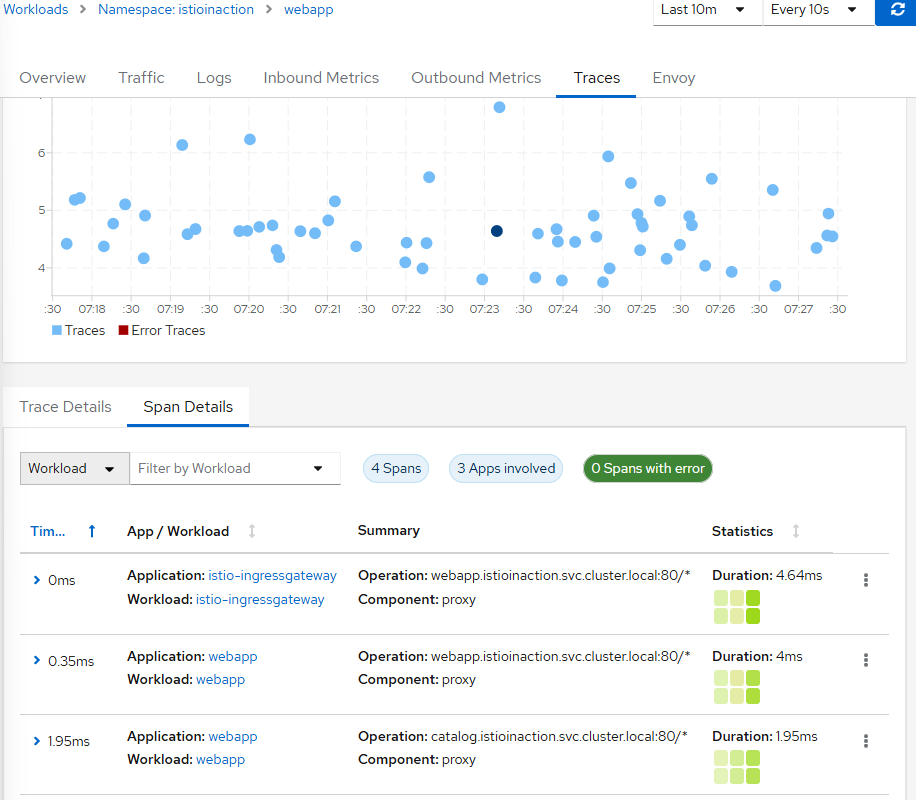 Istio는 Span을 분산 트레이싱 엔진으로 보낼 수 있으므로, 별도의 언어 전용 라이브러리나 애플리케이션 전용 설정이 필요 없습니다.