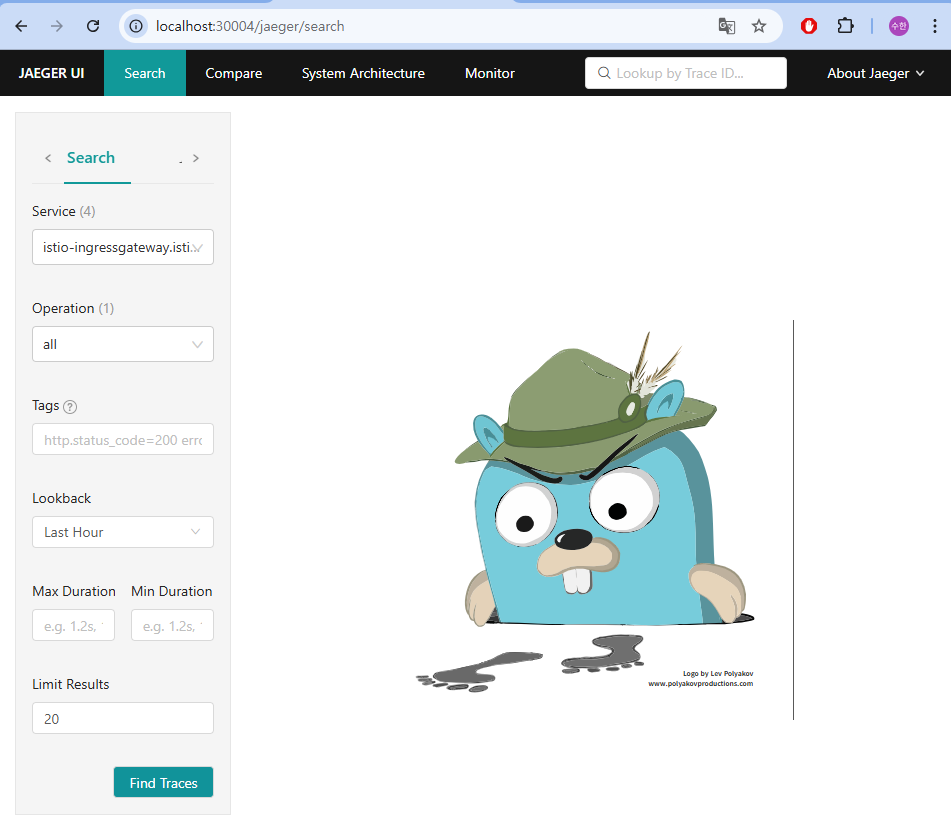 tracing: # 클러스터 내에서 실행 중인 예거 설정