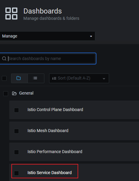 Grafana Dashboard에 접속해서 Istio Service Dashboard를 선택해줍니다.