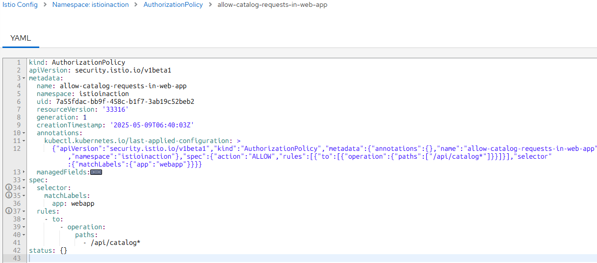 이제 AuthorizationPolicy 리소스의 YAML 파일을 살펴보면,