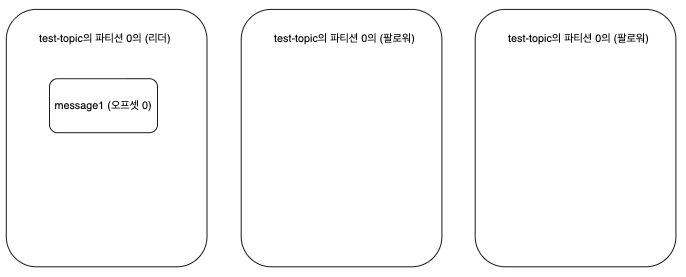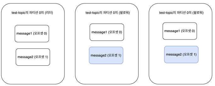 팔로워 브로커들도 리더 브로커로부터 message1 메시지를 리플리케이션 하게 됩니다.