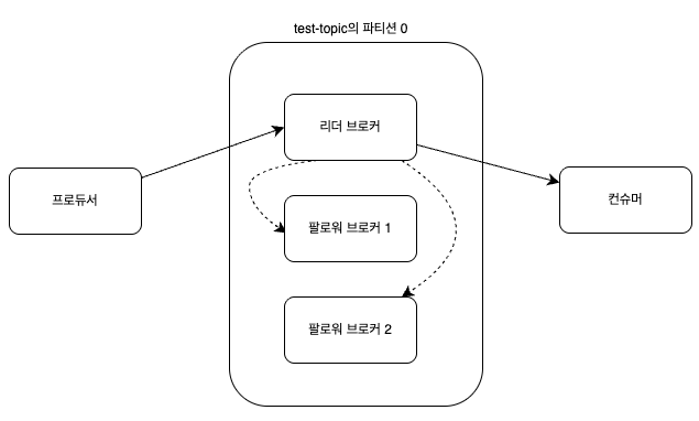 이 그림을 보면 프로듀서가 팔로워 브로커가 아닌 리더 브로커한테만 메시지를 보냅니다.