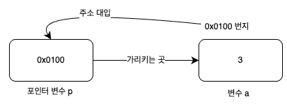 - 그 메모리 주소를 가리키는 것이 포인터이 때 변수 a의 주소가 0x0100 번지라고 가정을 했을 때, 메모리 주솟값(0x0100) 또한 숫자값이기 때문에 다른 변수의 값으로 사용될 수 있습니다.