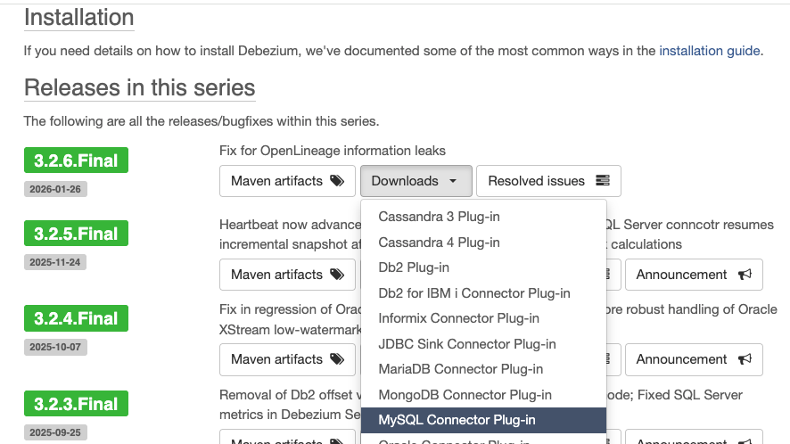 Debezium 다운로드 링크
