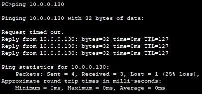 설정을 완료한 후 10.0.0.1에엇 10.0.0.130에 ping 명령어를 사용해보면