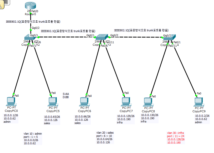 Trunk 포트를 사용하기 위해 라우터를 추가해서 구성을 해보면 아래와 같다.