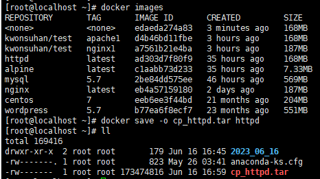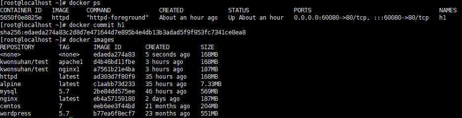 ex) docker commit nginx1 kwonsuhan/test:nginx = docker hup에 kwonsuhna/test 레포에 nginx tag로 저장된다.