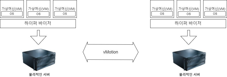- 서로 다른 물리적인 서버 간에도 가성머신들은 이동할 수 있음