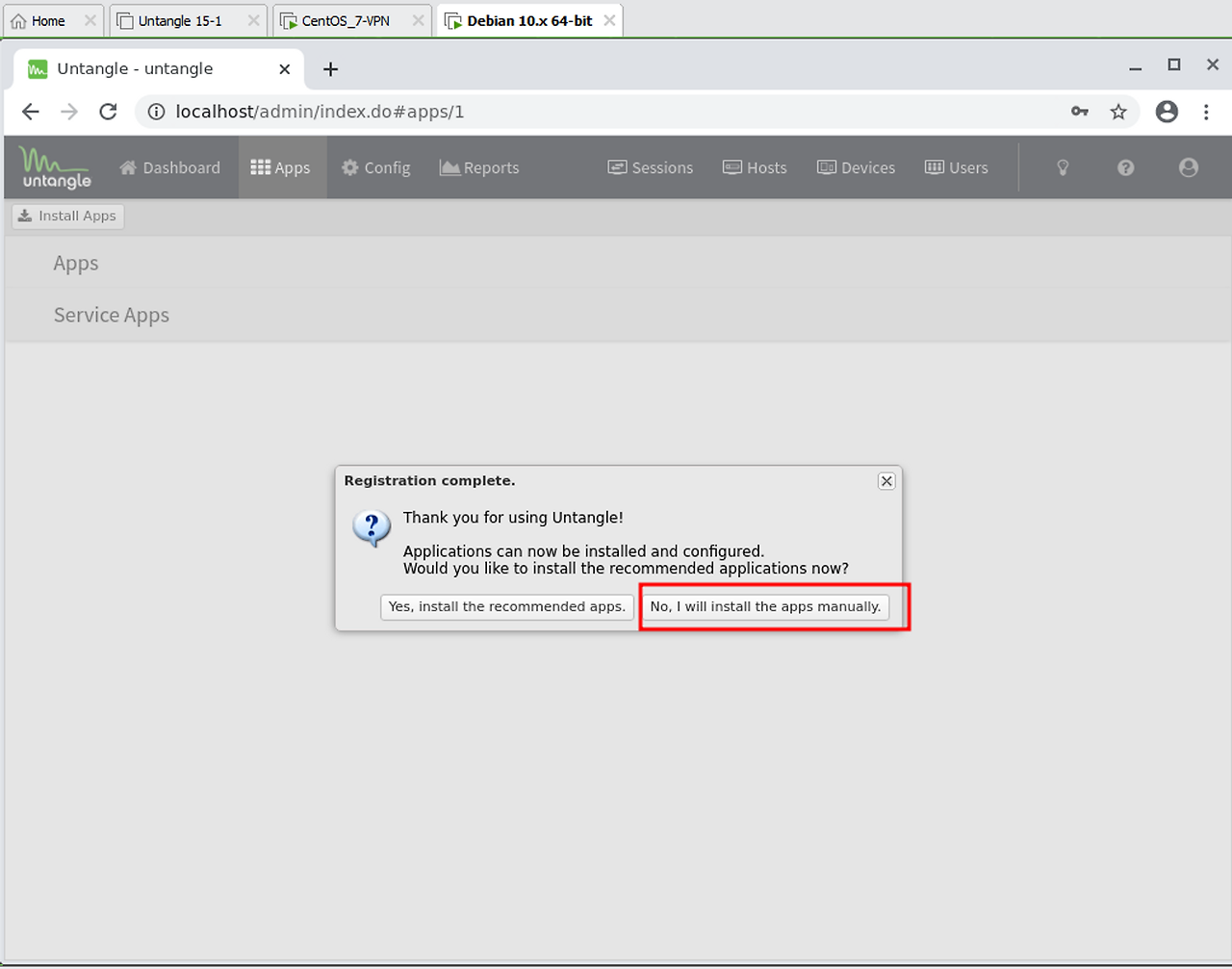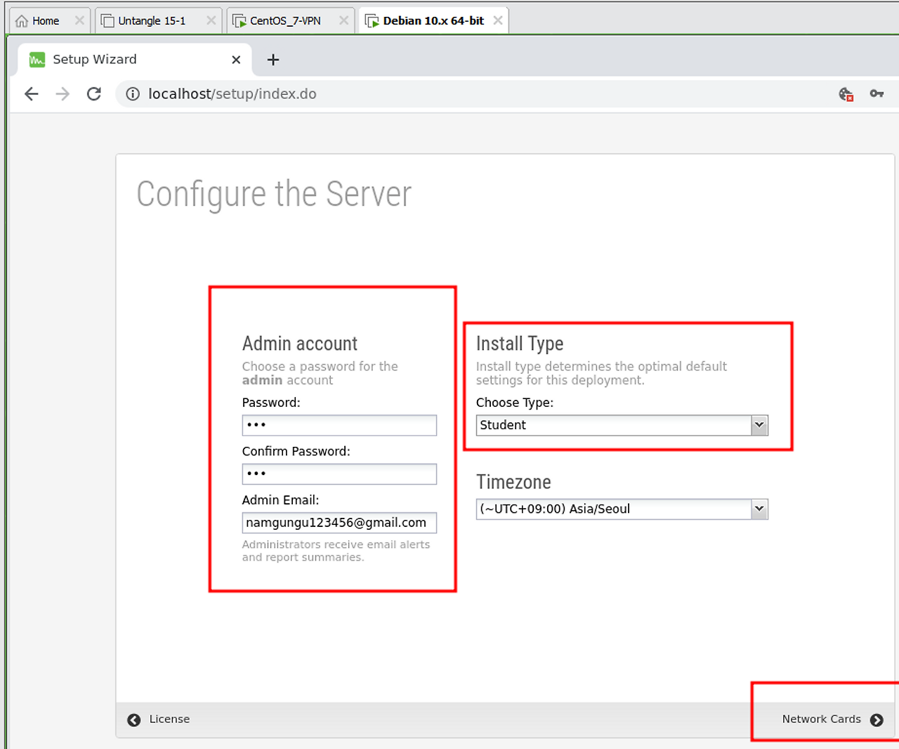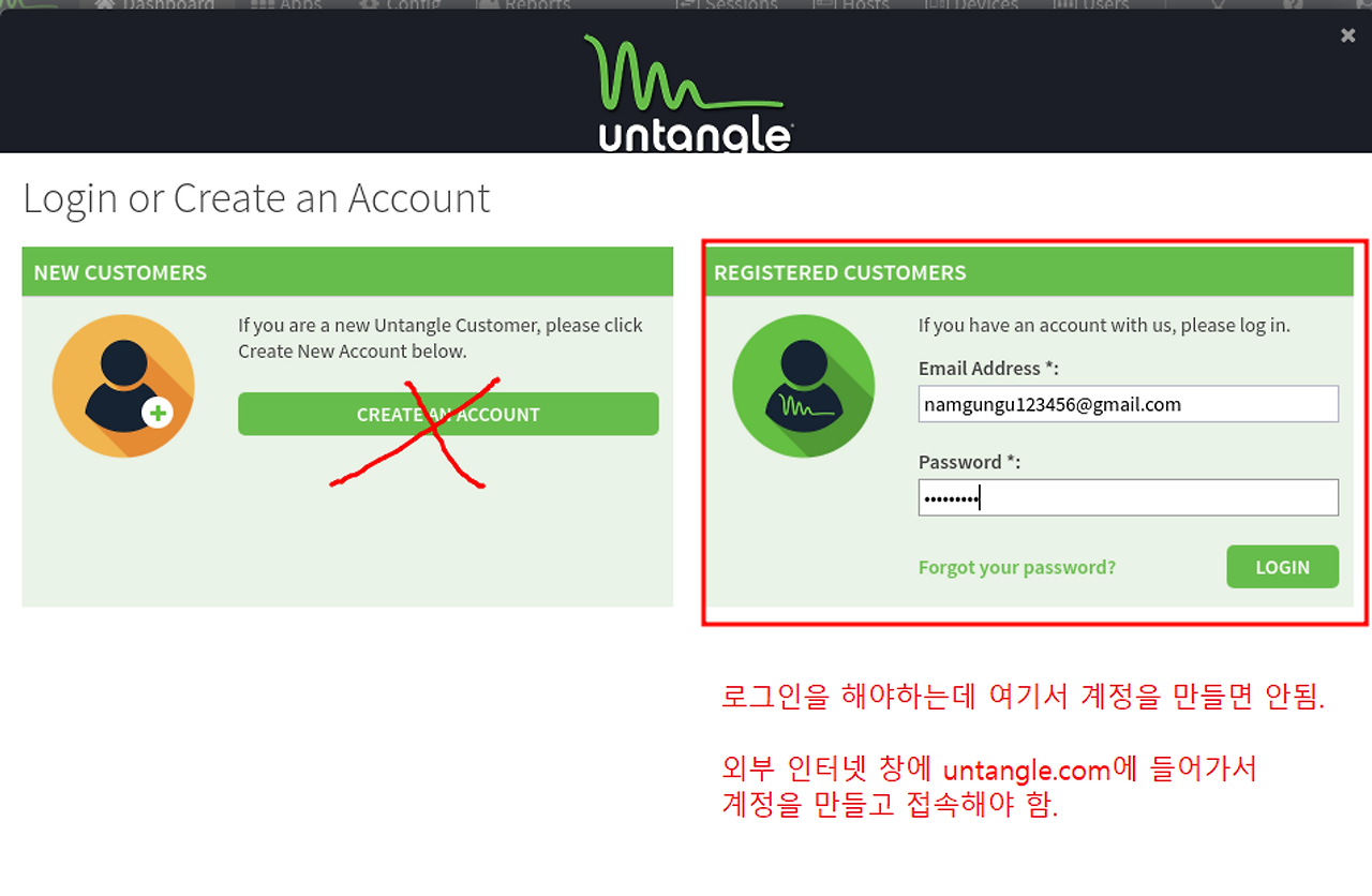 이 비밀번호는 untangle 서버의 터미널 로그인과 Launch Client 할 때 필요한 비밀번호 이다.
