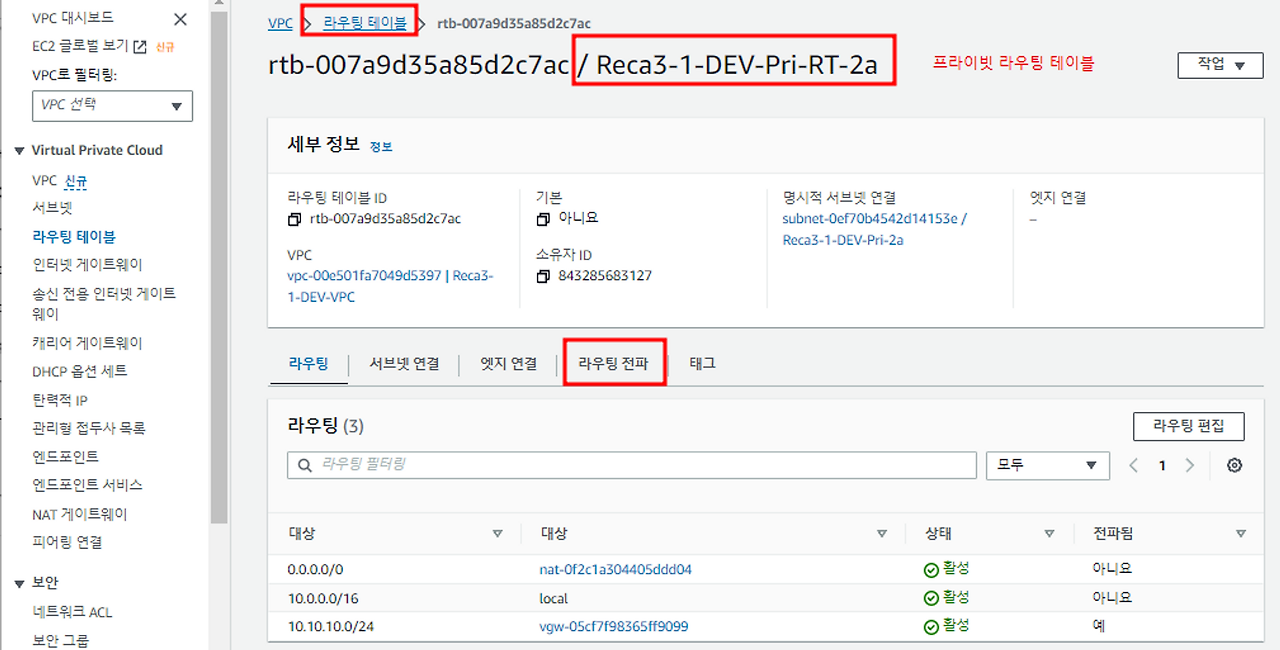 4-5 프라이빗 라우팅 테이블에 전파