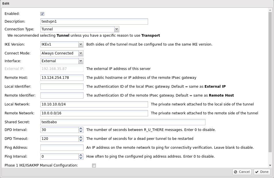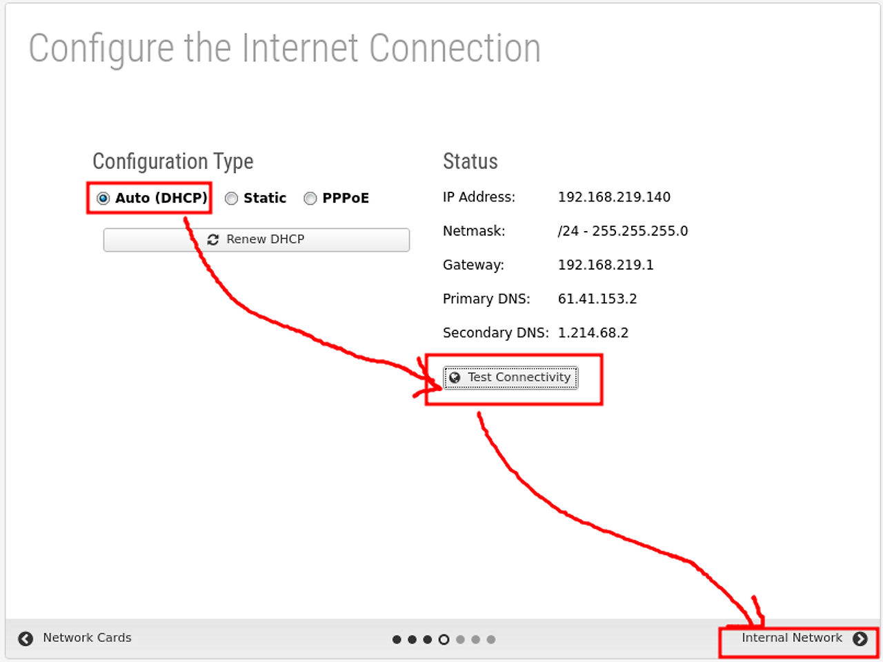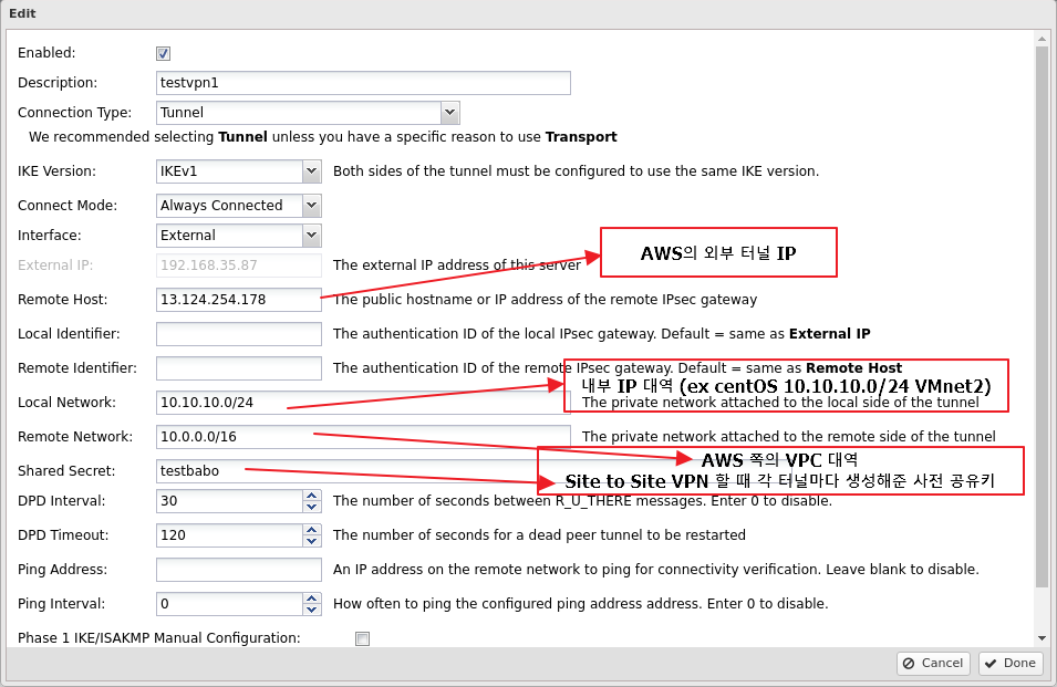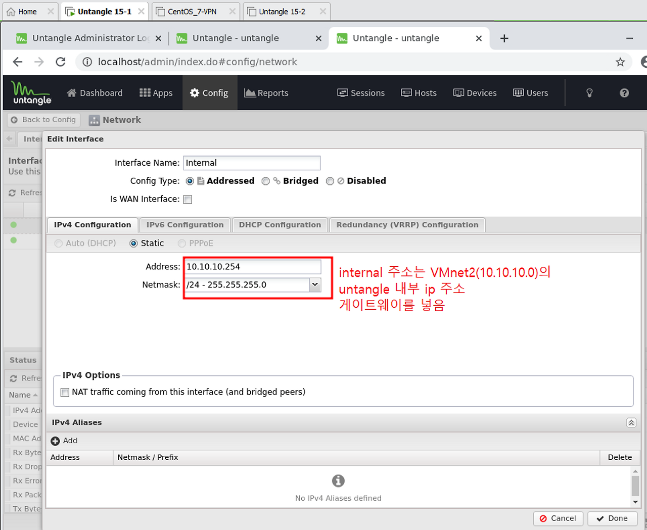 Internal Address에는 내부에서 사용될 gateway IP를 넣으면 된다.