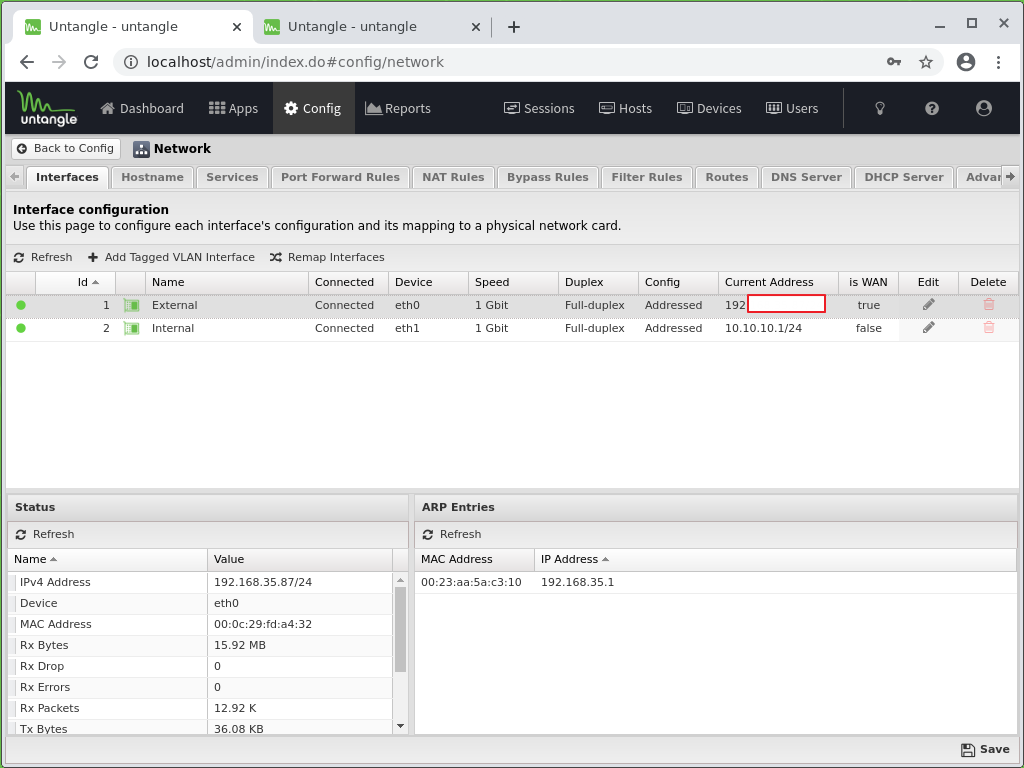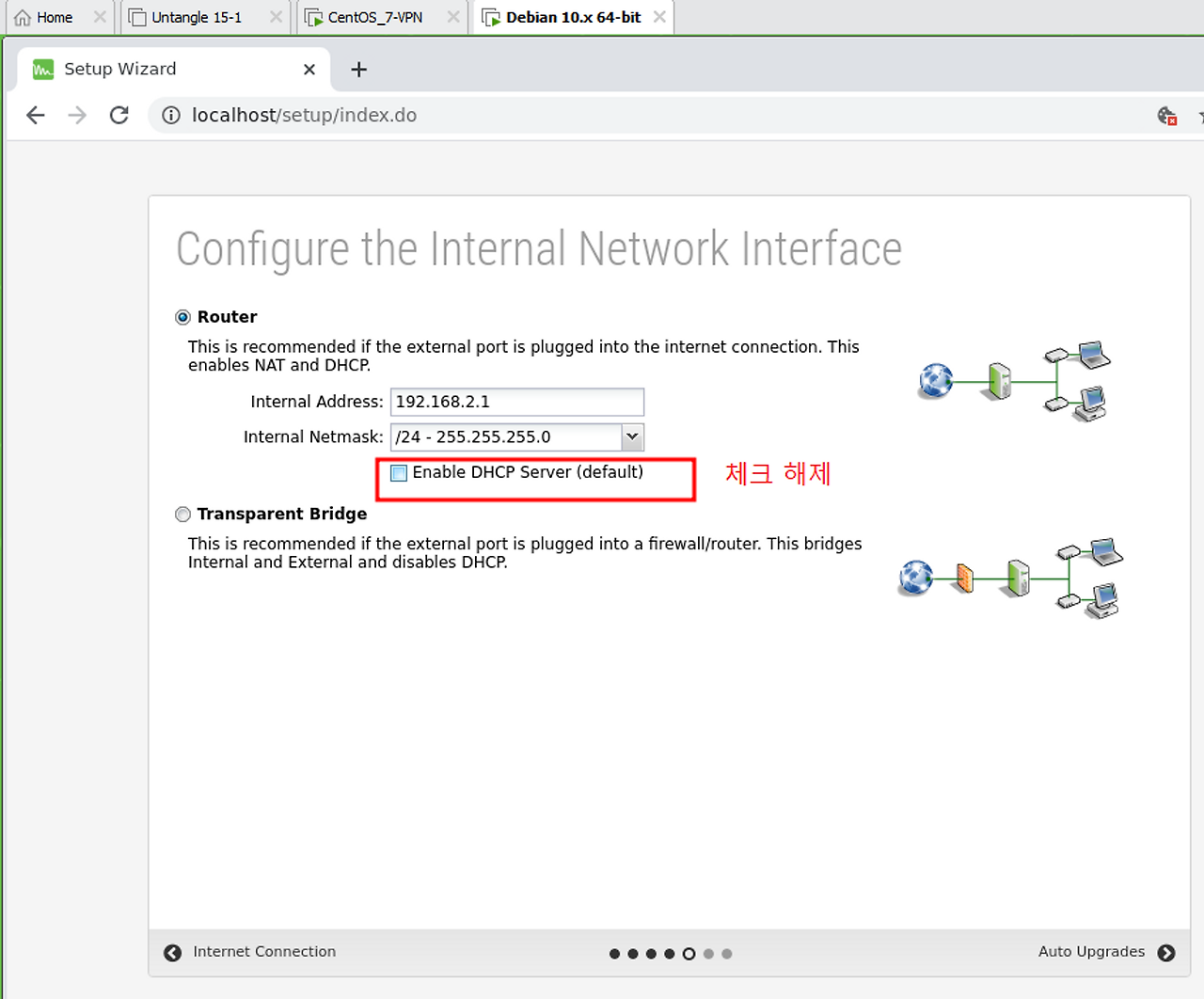 우선 untangle의 브릿지로 사용될 ip를 UDP(500,4500) 포트포워딩을 해주어야한다.