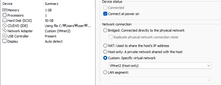 네트워크 어댑터 1번을 브릿지로 사용하는 이유는 VM이 HostOS의 공유기와 같은 대역의 IP를 사용해서 다른 내부의 VM을 untangle을 통해 aws의 인스턴스와 통신할 수 있도록 해주기 위함이다.