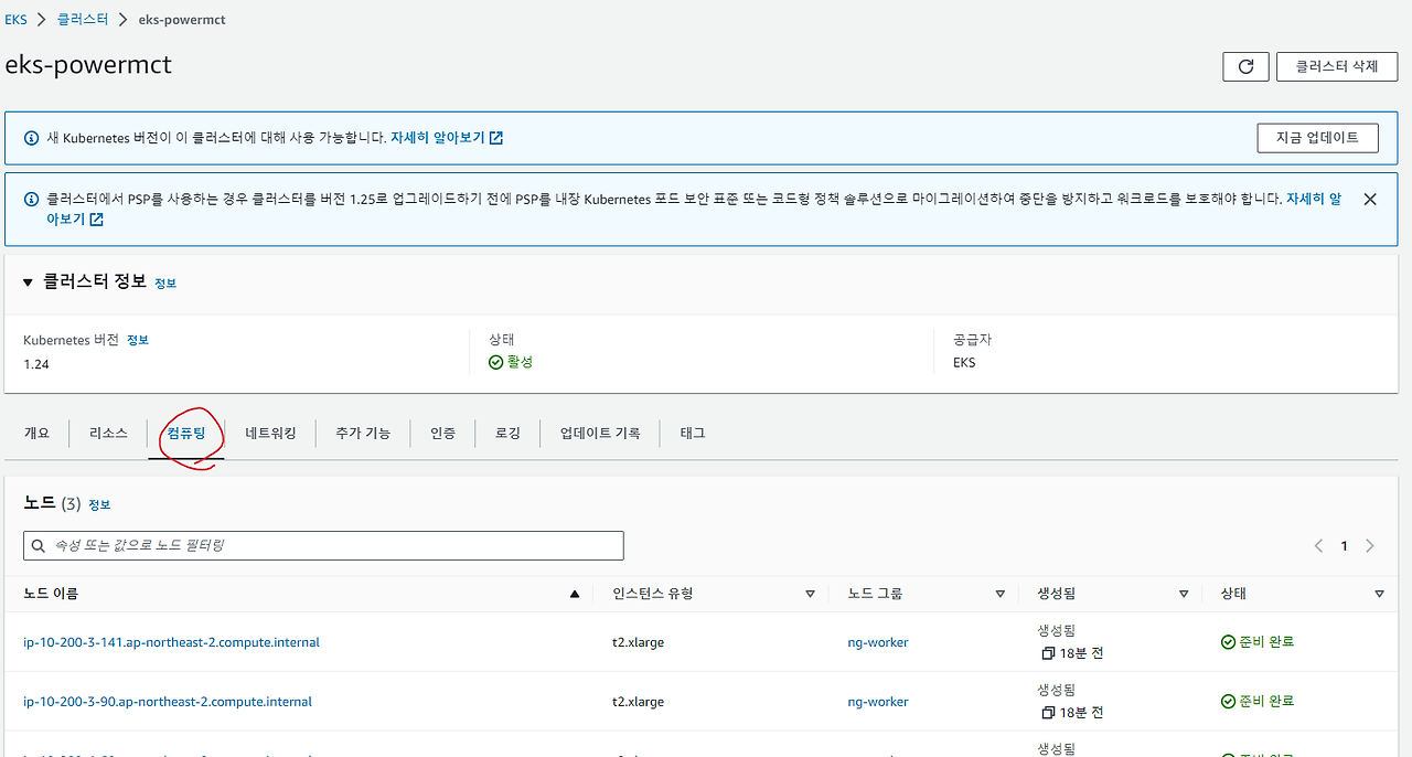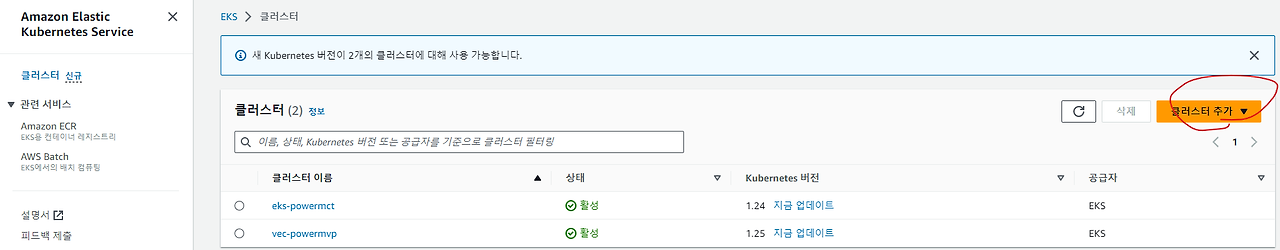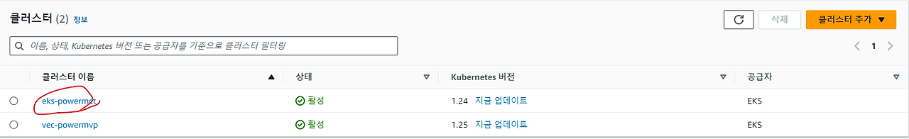=> 콘솔에서 만든 클러스터인 k8s-powermvp로 cli에서 접근 하는 명령어