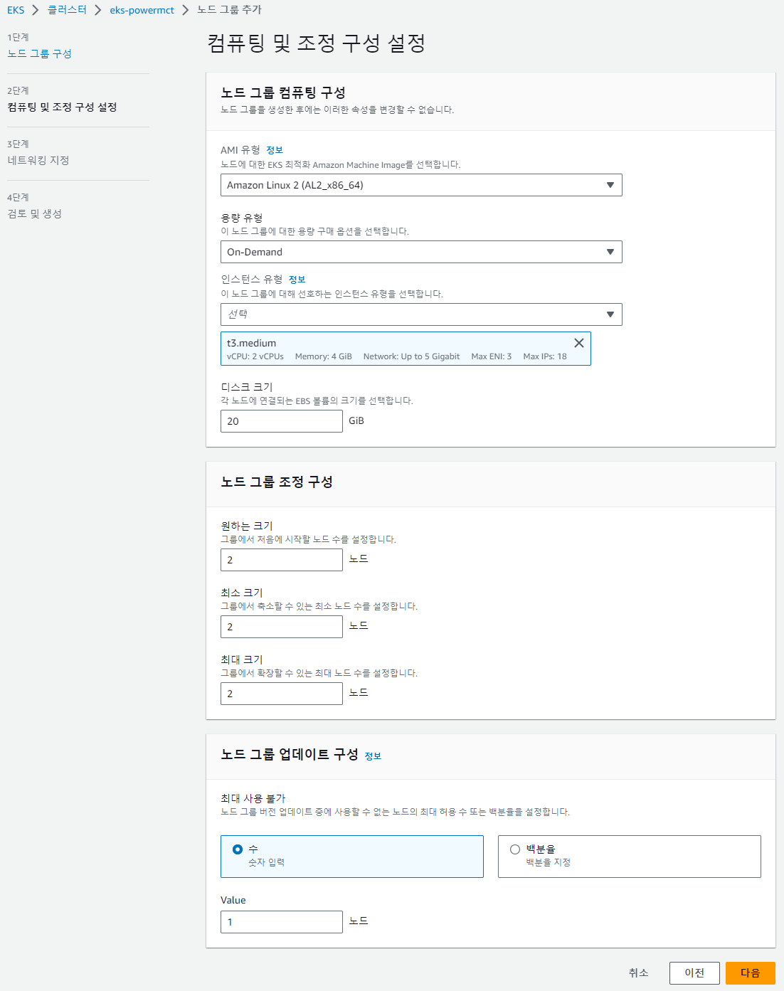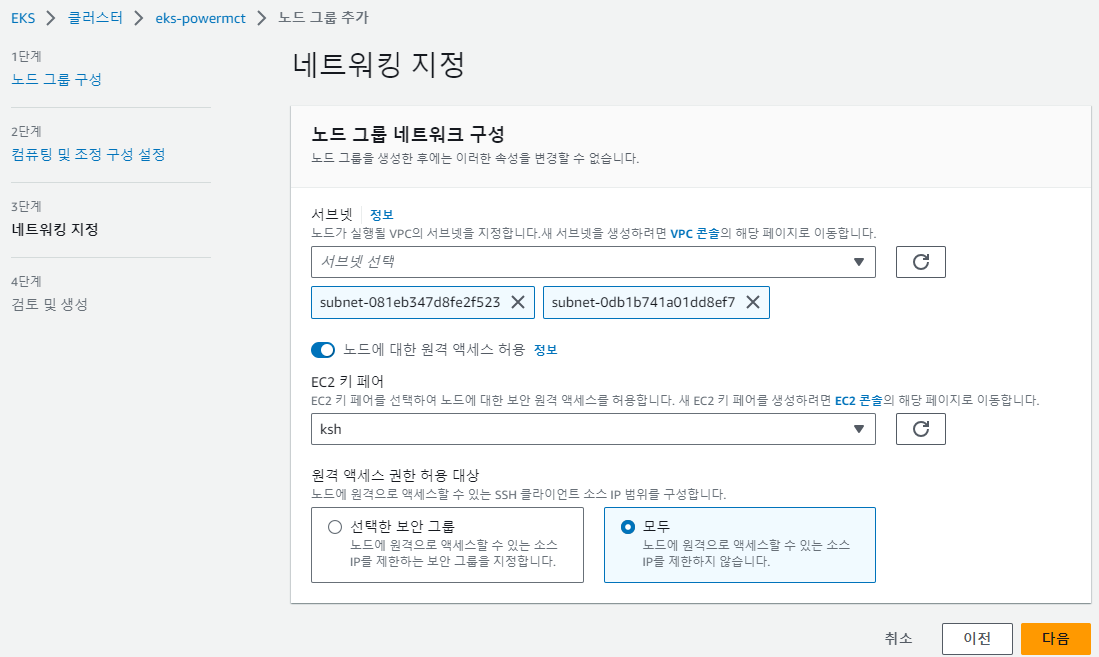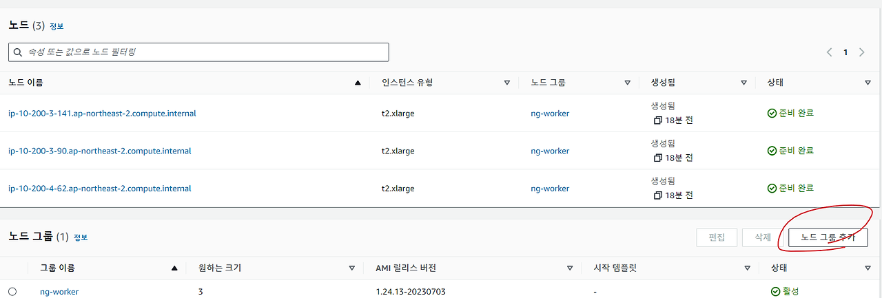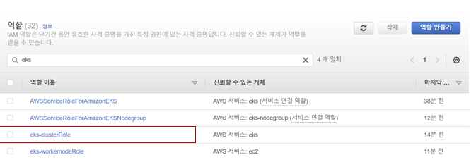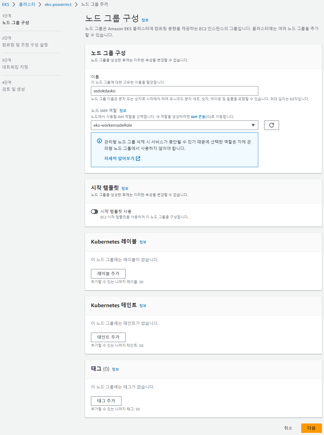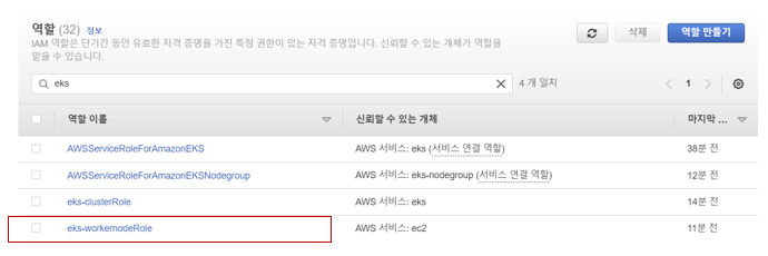 노드 IAM 역할도 미리 정해 주어야 한다.
