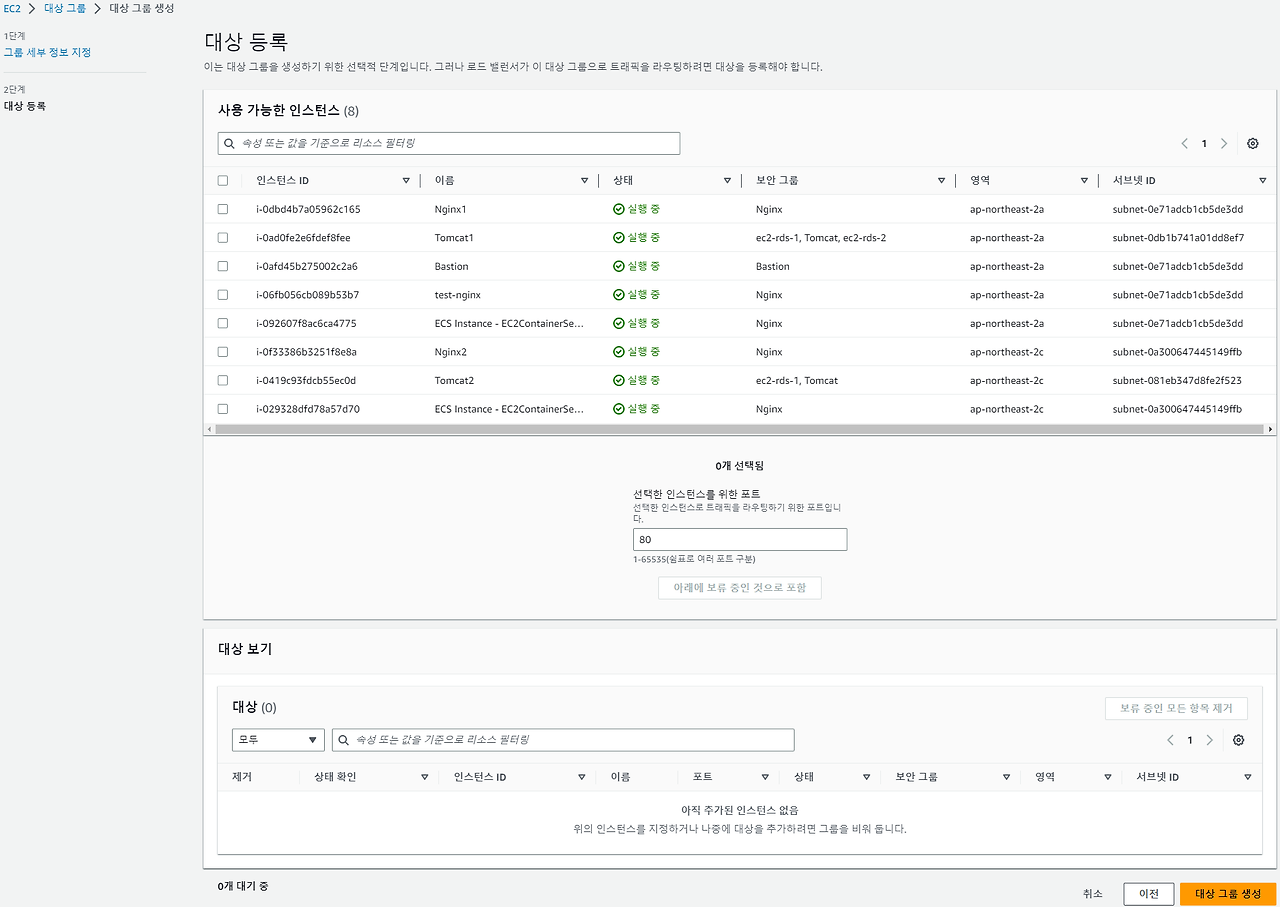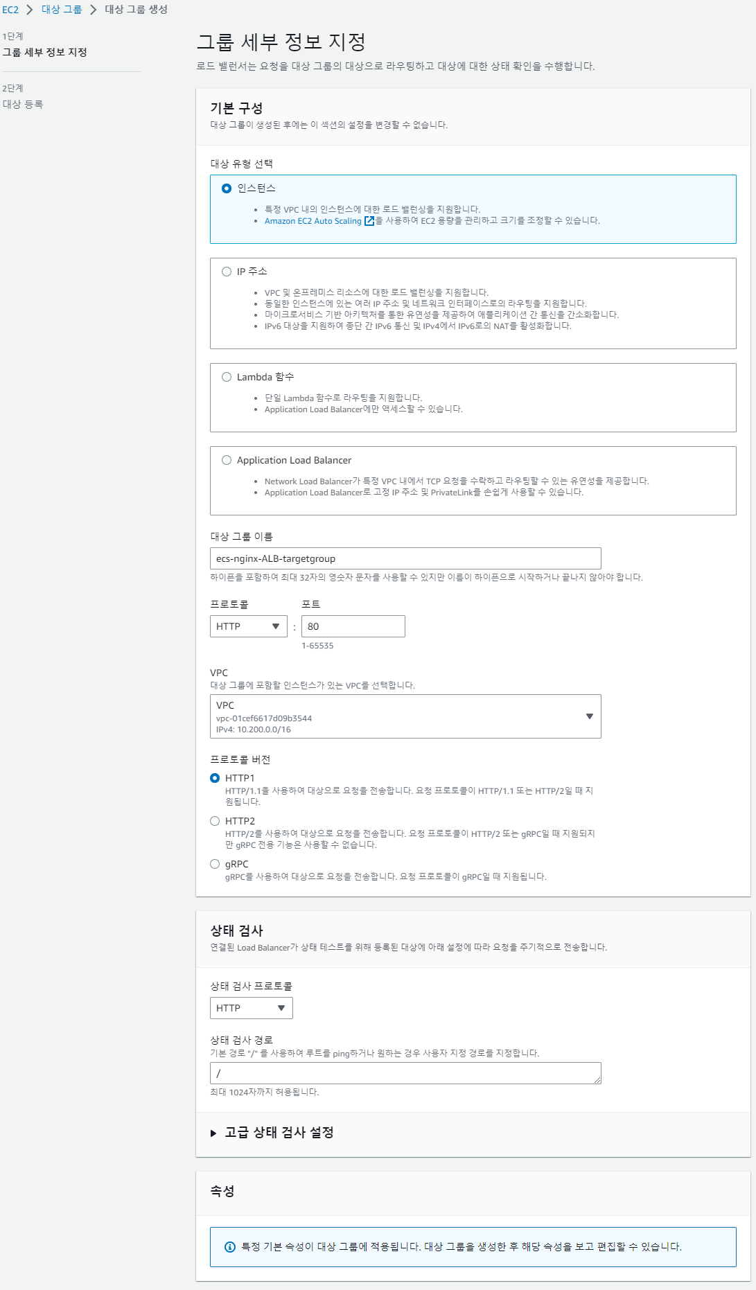 ECS의 fargate 작업을 하려면 ALB가 필요한데, 우선 대상 그룹을 먼저 생성을 해야한다.