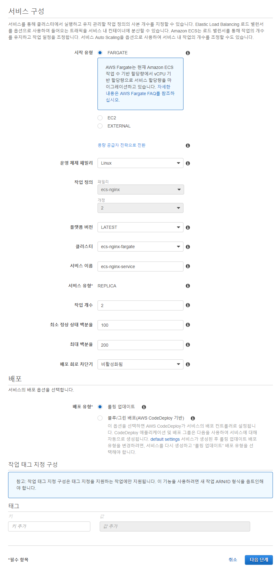 1차 배포 이후 1. Docker image ECR에푸시 2. Task Definition 3. 서비스 생성 또는 서비스 업데이트
