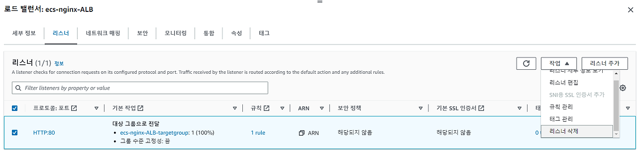ALB 구성, 단 이때 대상그룹/리스너는 삭제