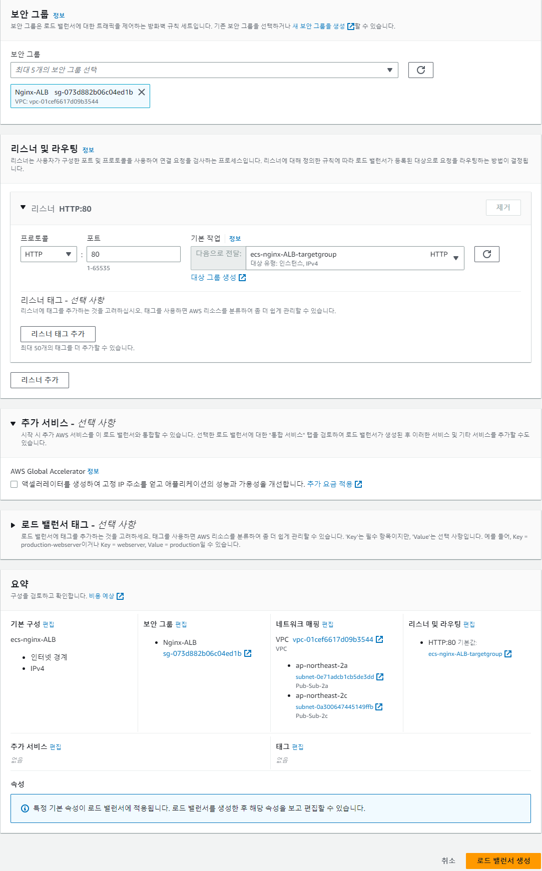 대상 그룹을 다 만들어줫으면 ALB로드밸런서를 만들어주면 된다.
