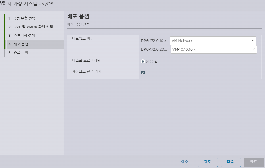 미리 준비해둔 vyos.ova 파일을 배포 가상머신에 배포 해준다.