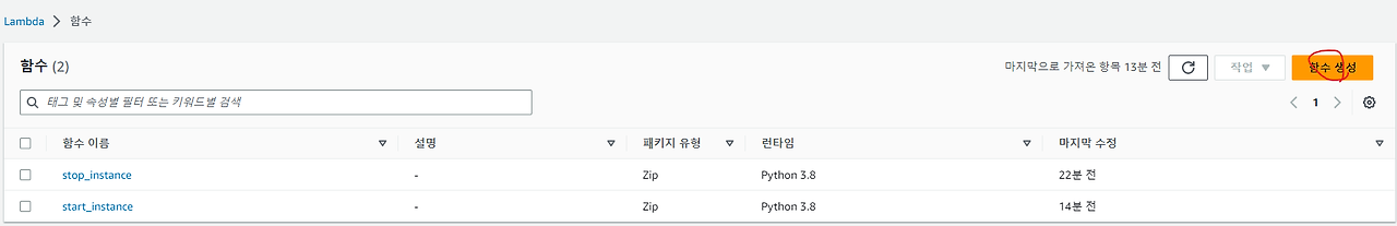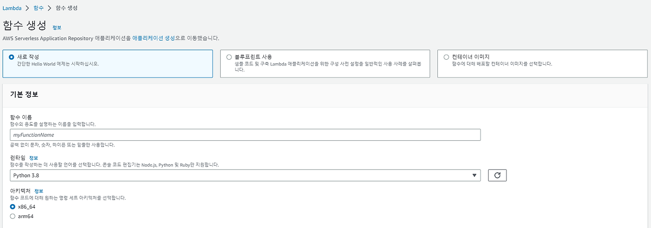 함수 이름 정해주고 런타임 정해주고 난 후에