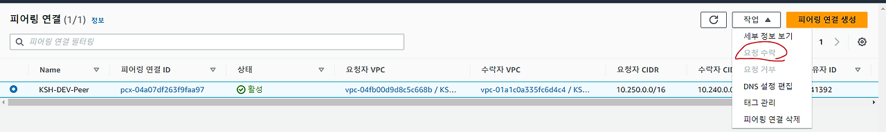 VPC ID(수락자) => 10.240.0.0/16의 VPC ID선택