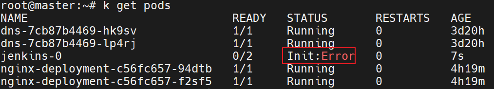 => Error from server (BadRequest): container "jenkins" in pod "jenkins-0" is waiting to start: PodInitializing