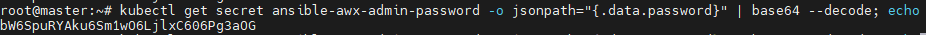 방법: kubectl get secret ansible-awx-admin-password -o jsonpath="{.data.password}" | base64 --decode; echo
