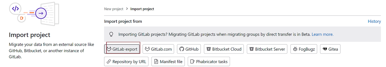 - Gitlab export 해주면 클릭 후, tar 파일을 넣어주면 끝