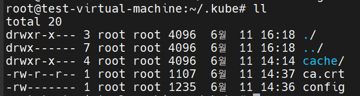 (저 같은 경우에는 새로운 가상머신의 .kube 디렉터리 안에 위에서 생성한 kubeconfig 파일을 config 파일로 이름을 변경하여 넣어주었습니다.)
