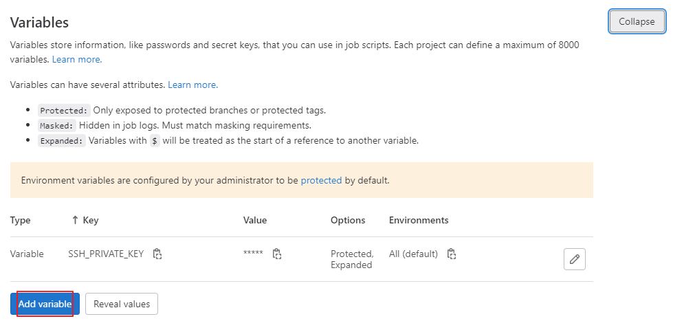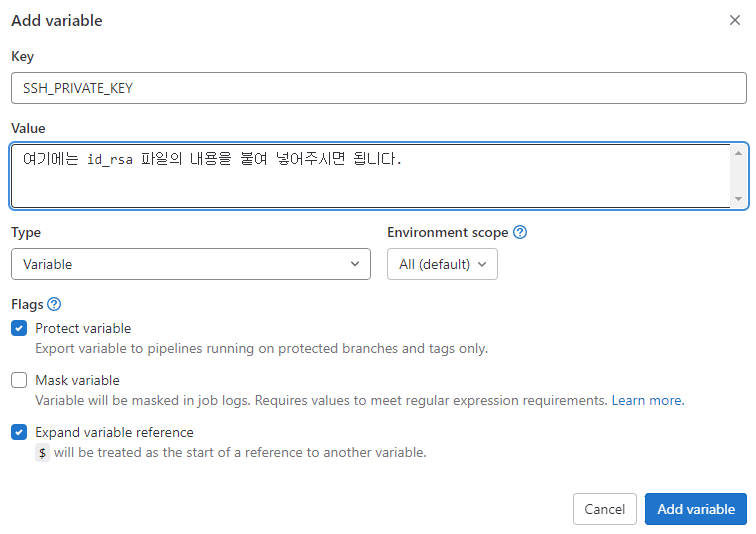 3. Gitlab CI/CD 변수에 개인 키 추가